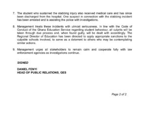 In addition to the ban, each school has been fined GHC 500.00 and will be surcharged for any costs incurred as a result of damage to property or injuries sustained by individuals.
